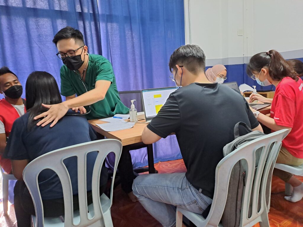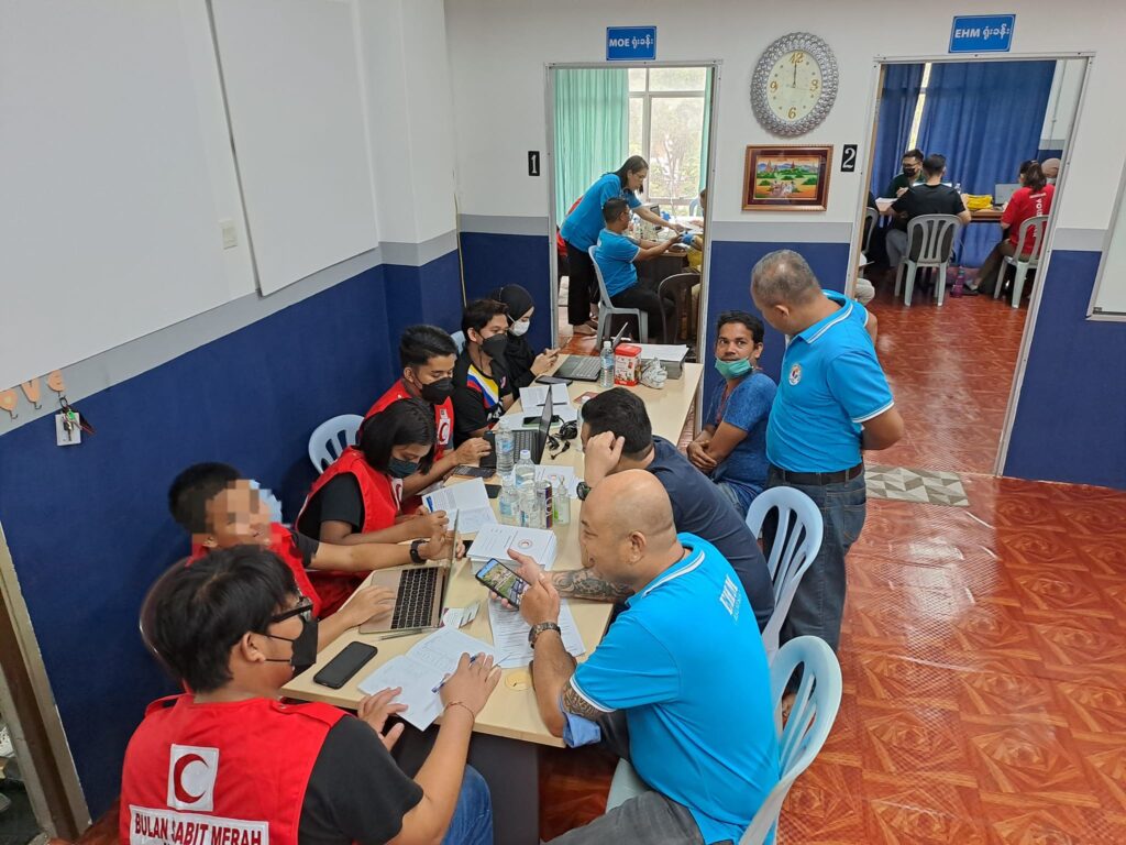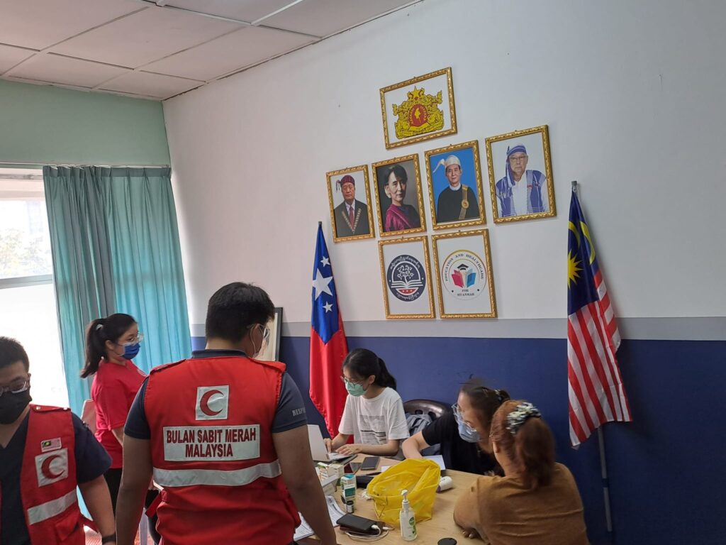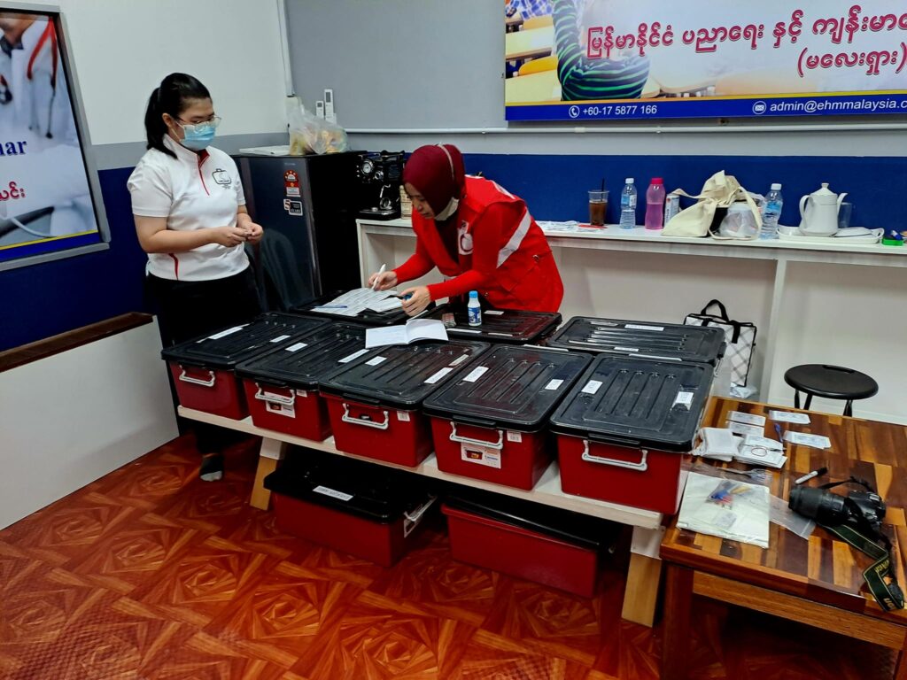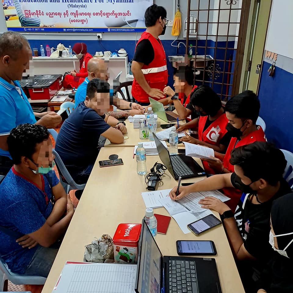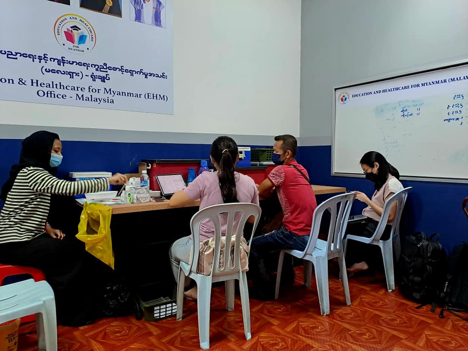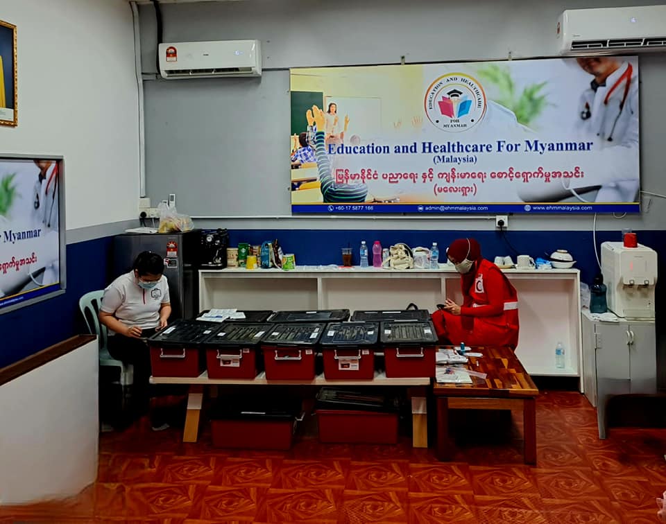 ၂၀၂၃ ခုနှစ် ၁လပိုင်း ၇ရက်နေ့တွင် EHM ရုံးခန်း၌ မလေးရှားရောက် မြန်မာနိုင်ငံသားများအားလုံးအတွက် ကျန်းမာရေး ကူညီစောင့်ရှောက်မှူ အစီအစဥ်တစ်ရပ် အနေဖြင့် လူမျိူးမရွေး ဘာသာမရွေး “အခမဲ့” Covid ကာကွယ်ဆေးထိုးပေးခြင်းနှင့် အတူ အခမဲ့ အထွေထွေကျန်းမာရေးဆိုင်ရာ စစ်ဆေးမှူများ နှင့် သွားနှင့်ခံတွင်း ဆိုင်ရာ စစ်ဆေးပေးမှူများကို ကျွမ်းကြင်ဆရာဝန်ကြီးများဦးစီး၍ မလေးရှား ကြက်ခြေနီ အဖွဲ့မှ ကူညီပြုလုပ်ပေးခဲ့ပါသည်။